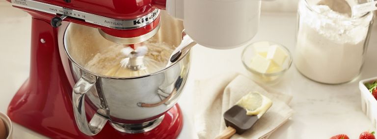 When figuring out how to make ice cream cake, you should give thought to what tools you’ll need. If you want to make a layered dessert with both freshly-baked cake and ice cream, you should put your trusty stand mixer to use. You want to make sure you have the right cake-making accessories. Learn about the different types of stand mixer accessories from KitchenAid® and how to use them by reading the attachment and accessories buying guide.