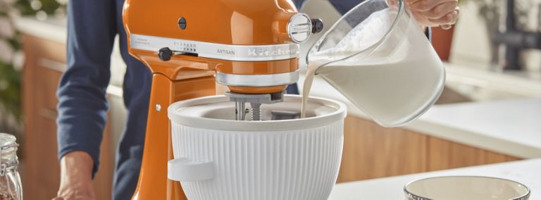 With a KitchenAid® Stand Mixer, the possibilities and flavour combinations you can explore are limitless. Go with a classic Mint Chocolate Ice Cream Cake or a Salted Caramel Ice Cream Cake—you can’t go wrong. Ensure your kitchen is ready for any culinary creation you want to tackle with a collection of stand mixer attachments. There’s the KitchenAid Ice Cream Maker Attachment and easy-to-store add-ons like a dough hook for making bread and a pasta roller for crafting silky and beautiful spaghetti, fettuccine or other favourites