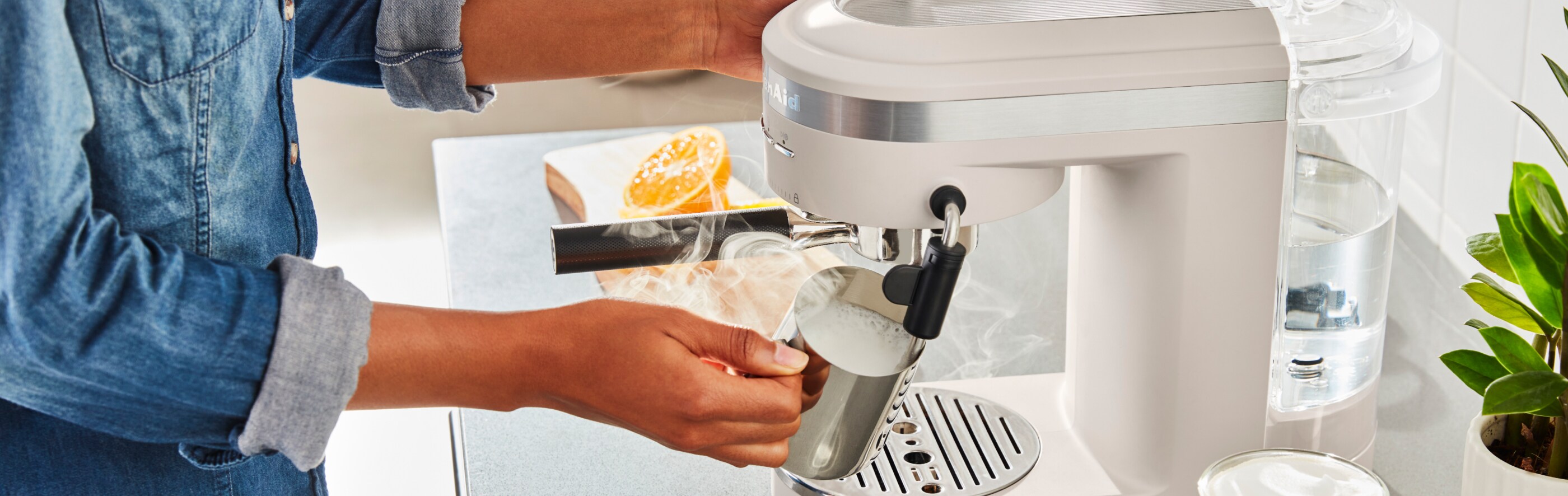 Indulge in rich and creamy café classics with a milk frother. Explore KitchenAid® espresso machines featuring a steam wand for handcrafted lattes, macchiatos, mochas, and more. Alternatively, opt for the convenience of the KitchenAid® Automatic Milk Frother Attachment, offering light and silky milk foam at the simple touch of a button. Looking for other coffee tools? Shop the entire coffee collection to find whatever you need for your perfect cup from grinders to cold brew coffee machines, or explore gifts for the coffee and tea lovers in your life.