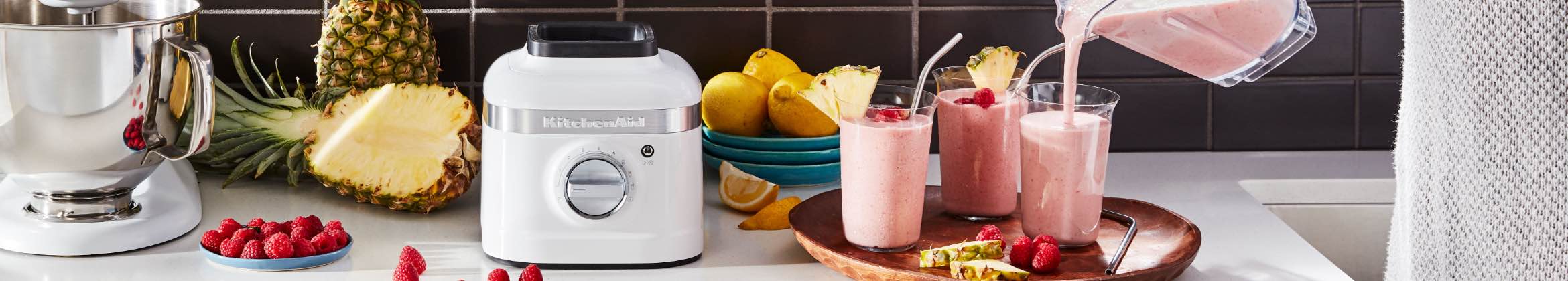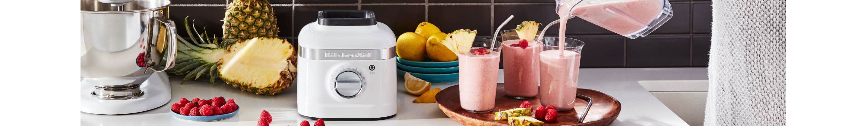 Arguably one of the most popular uses for a blender is to make blended drinks. A blender that can easily crush ice will be useful when you're making smoothies, daiquiris, margaritas and other frozen drinks with ice. The K150 blender features a specialized ice-crush setting, perfect for icy drinks. Higher-powered blenders like the Commercial blender can quickly transform tough ingredients like kale and seeds into smooth, delicious results. Drinks such as milkshakes and smoothies without ice or frozen fruits can easily be blended with an immersion blender. Or, make enough just for one with the new KitchenAid® Personal Blender Jar expansion pack for the KitchenAid® K150 and K400 blenders.