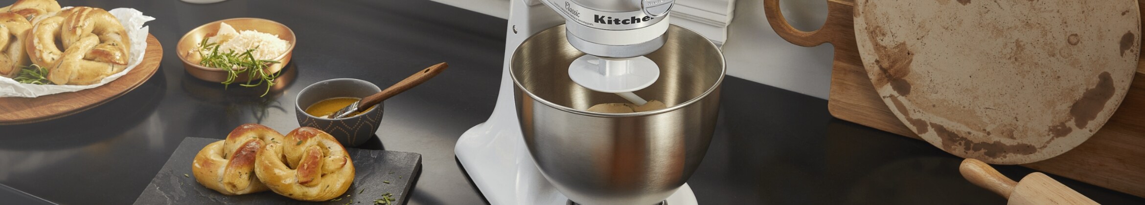 Your perfect pretzel is no longer just a dream; it's a reality you can easily achieve in the comfort of your own kitchen! With the help of a KitchenAid® Stand Mixer and KitchenAid® Dough Hook Accessory, preparing this mouthwatering treat becomes a delightful culinary experience. Unleash your inner baker and enjoy the thrill of creating soft, fluffy pretzels that are flawlessly kneaded and oh-so delicious.