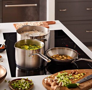 Induction cooking technology differs from gas-powered or electric radiant heat. The first thing to note is that rapid heating takes some getting used to, so it’s recommended to monitor your food closely as it cooks to help prevent overcooking. Another change is that you won’t be able to use any cooking technique that requires an open flame.