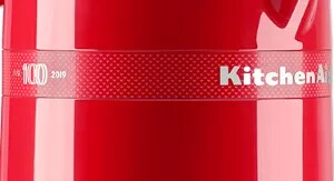 With sleek chrome accents and a passion-inspired, monochromatic trimband with 100 year logo and hundreds of miniature red hearts and logo celebrating 100 years of KitchenAid brand