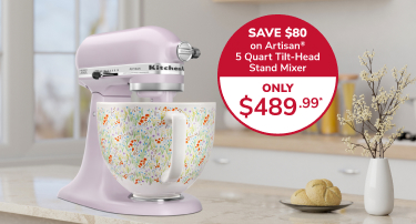 Save $100 on the Artisan® Series 5 Quart Tilt-Head Stand Mixer with Walnut Wood Bowl*