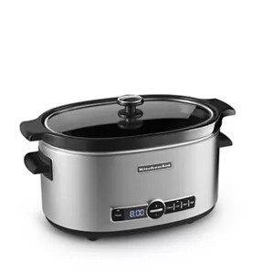 Make everything from a savory beef roast to short ribs, stews, soups and so much more with the KitchenAid® 6-Quart Slow Cooker with Solid Glass Lid. And it's so easy, with convenient features like 24-hour programming, digital LCD display, and four temperature settings, including an automatic Keep Warm mode.