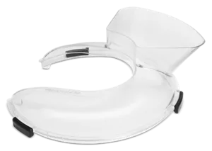 Secure Fit Pouring ShieldIntroducing the new Secure Fit Pouring Shield, designed to minimize countertop messes while you're mixing. Featuring easy snap tabs that securely attach the pouring shield to your stainless steel mixing bowl, and a large angled ingredient slide which allows you to easily add your carefully measured ingredients. Fits most* 5, 5.5 and 6 Quart KitchenAid® Bowl-Lift Stand Mixers** with stainless steel bowls. *Does not fit KN25WPBH, **Sold separately.