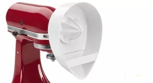 Citrus Juicer AttachmentUse the power of your Stand Mixer to juice citrus fruits quickly and easily. Ideal for working with large quantities of citrus fruits, this attachment rapidly extracts juice from handheld fruits directly into a bowl, pitcher, or measuring cup, catching seeds in a built-in strainer.