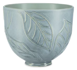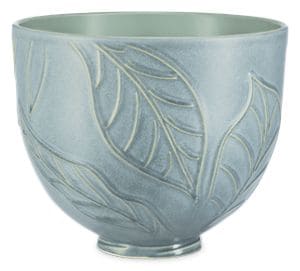 Accessorize your KitchenAid® Tilt-Head Stand Mixer* with this 5 Quart Spring Leaves Ceramic Bowl, for all of your mixing, whipping and kneading tasks. This beautiful bowl is inspired by the natural form of leaves, lending a touch of organic beauty to your tabletop and features a blue-green glaze ceramic finish with matte exterior. The bowl is made of durable ceramic to resist chipping, cracking, crazing, and staining. Additionally, it is freezer, microwave, dishwasher and oven-safe up to 475 degrees, making it a versatile kitchen tool. Designed to fit all 4.5- and 5-quart KitchenAid® Tilt-Head Stand Mixers*. * sold separately.