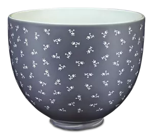 5 Quart Vintage Florals Ceramic BowlAccessorize your KitchenAid® Tilt-Head Stand Mixer* with this 5 Quart Vintage Florals Ceramic Bowl, for all of your mixing, whipping and kneading tasks. This beautiful bowl was inspired by the vintage micro floral on a blue modern bowl to bring warm memories to countertop, while its light blue interior shines with your recipes. The bowl is made of durable ceramic to resist chipping, cracking, crazing, and staining. Additionally, it is freezer, microwave, dishwasher and oven-safe up to 475 degrees, making it a versatile kitchen tool. Designed to fit all 4.5- and 5-quart KitchenAid® Tilt-Head Stand Mixers - sold separately.