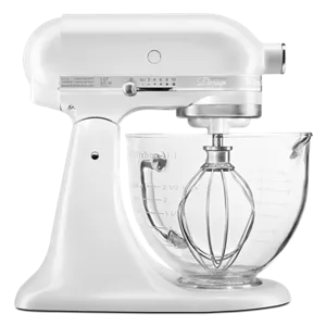 Artisan® Design Series 5 Quart Tilt-Head Stand Mixer with Glass BowlWhether you need 9 dozen* of your signature chocolate chip cookies or shredded chicken for Taco Tuesday with friends and family, the KitchenAid® Artisan® Design Series 5 Quart Tilt-Head Stand Mixer has the capacity for every occasion. This durable tilt-head stand mixer was built to last, and features 10 speeds to gently knead, thoroughly mix and whip ingredients for a wide variety of recipes and will add style to your kitchen with a premium metallic finish and elegant glass mixing bowl. Get creative and make more with your mixer with over 10 optional hub-powered attachments**, from food grinders to pasta makers and more. *Using the flat beater; 28g dough each **sold separately.