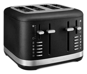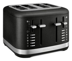 4 Slice ToasterMake everyday simply delicious and easily toast your favourite breads, bagels and more with ease. This KitchenAid® 4 Slice Toaster features extra-wide slots to toast a variety of shapes and sizes, including homemade or craft breads. For added convenience the adjustable shade control, from light to dark, ensures you'll have your toast just the way you like it, every time. It's built to last and the durable metal design adds style to your countertop