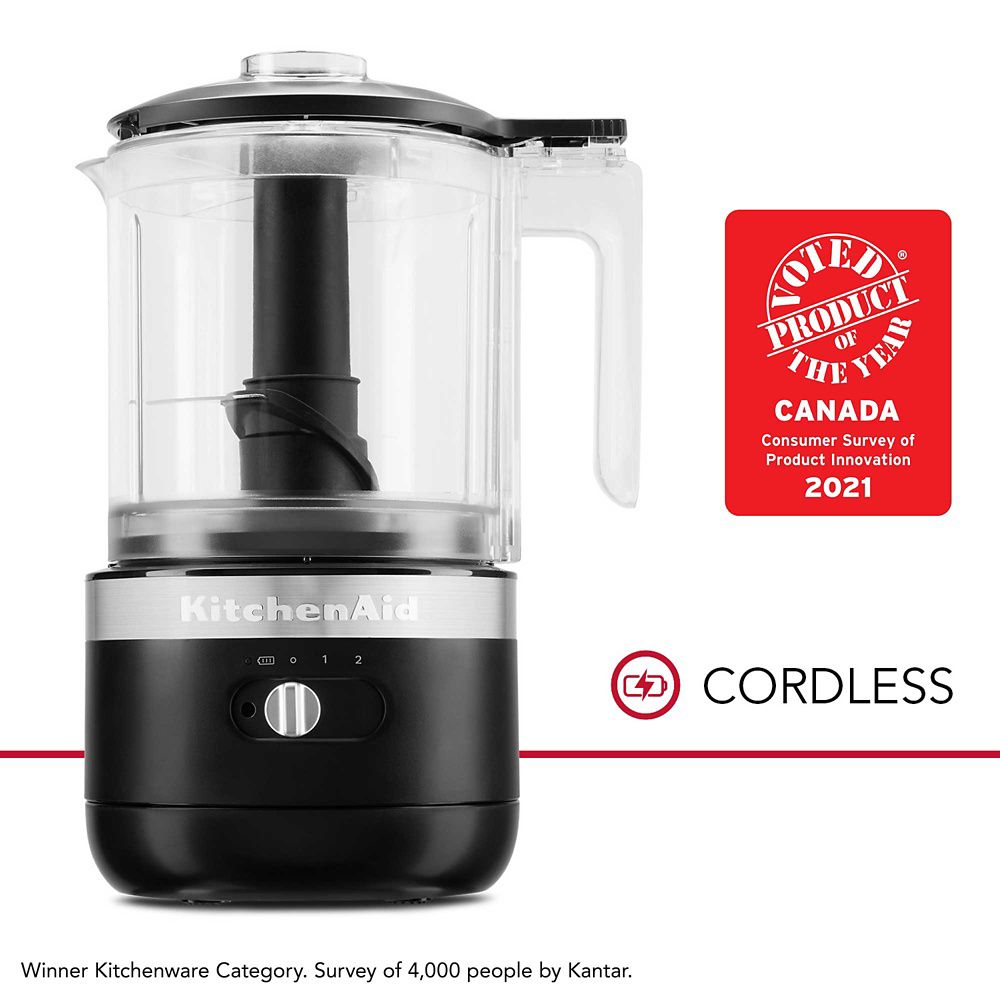 All the Power You Expect, without the Cord. Go where ambition takes you with the Cordless Food Chopper from KitchenAid. Designed with a powerful rechargeable Lithium Ion Battery, the new cordless food chopper delivers optimal runtime and performance, so you can cook wherever, whatever, and however you choose. Chop up to 40 onions on a full charge *Indoor use only. **Based on onion size of 90 - 110 grams