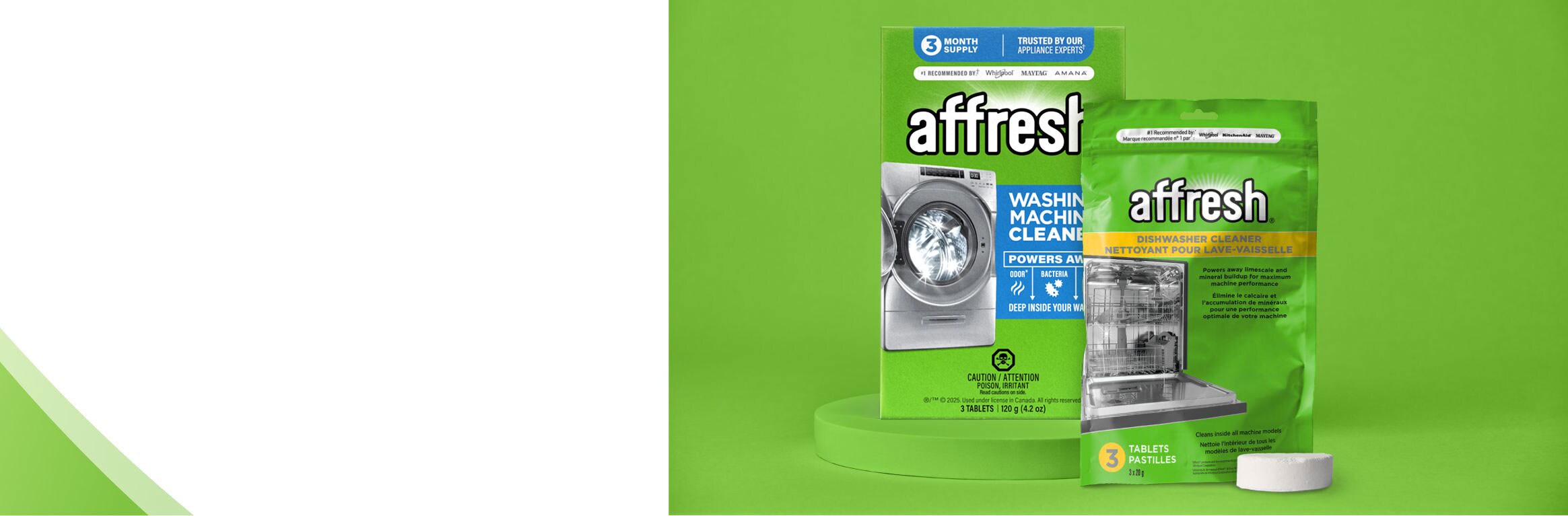 affresh® Washer cleaner penetrates, dissolves and helps remove odour-causing residue, leaving the washer clean and smelling fresh.