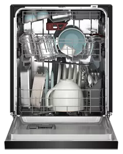 uses over a dozen dedicated wash jets to clean inside coffee mugs and cereal bowls. It also features a removable utensil tray.