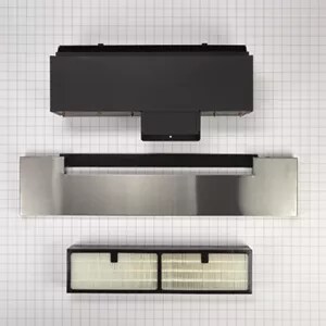 This Range Ductless Downdraft Vent Kit, Stainless Steel can be used when venting your range when the outside is either not possible or not desirable in the kitchen. This kit contains a filter housing that attaches to the blower under the unit; the filter cleans the air before it re-enters the home. Check to see if your cooktop’s model number is compatible. Size: 39-1/2" (100.3 cm) L x 16" (40.6 cm) W x 11-1/2" (29.2 cm) H. Installing this accessory will require basic hand tools and novice repair experience. Remember to turn off the appropriate circuit breaker before installing this part. Helpful Tip: For optimum performance of your vent, change the filter every 6 months or when a loss of airflow can be detected.