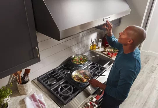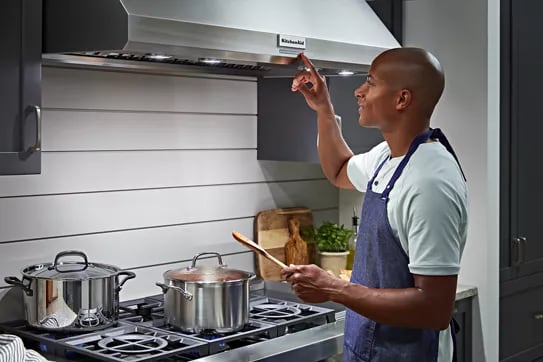 Provides intuitive assistance to help keep smoke and steam from building up in the kitchen. If the hood's sensor detects high-heat cooking on multiple burners while the controls are off, it will automatically turn on the fan and set it to Power Boost.