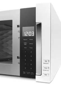Provides a streamlined appearance by concealing the microwave's touch pad control panel inside the door.