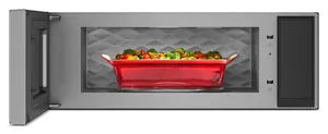 Provides a small, sleek microwave with finishing that blends into cabinetry and strong features that are powerful enough to replace hoods.