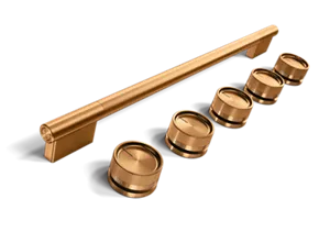 | Personalize your hardware with a Handle and Knob Accessory Kit in Bronze. Designed to coordinate with kitchen faucets and cabinet pulls, the curated palette of mixed metals complements all KitchenAid® exterior finish options, so you can mix and match with confidence. |
