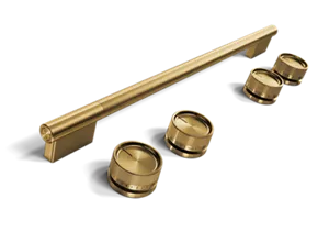 Brass Handle and Knob Hardware Accessory Kit for KitchenAid® Slide-In Convection Electric RangePersonalize your hardware with a Handle and Knob Accessory Kit in Brass. Designed to coordinate with kitchen faucets and cabinet pulls, the curated palette of mixed metals complements all KitchenAid® exterior finish options, so you can mix and match with confidence.