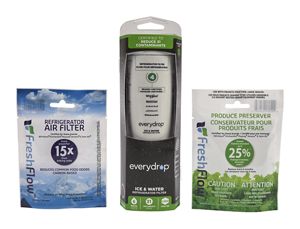 everydrop Ice & Water Refrigerator Filter 4, FreshFlow™ Refrigerator Air Filter AIR1, FreshFlow™ Produce Preserver Refill Bundle