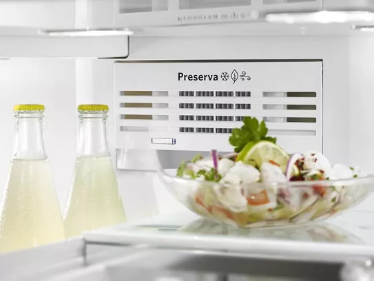 Two independent cooling systems provide a dedicated refrigeration unit to help keep food fresh longer, and a separate system for frozen food. The FreshFlow™ Air Filter helps minimize odours while the two Produce Preservers help delay over-ripening.