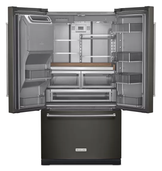 brings premium style inside the refrigerator to complement the quality ingredients you keep on hand. Sleek silver colored walls accented by metallic trim on shelves, drawers and door bins offer a step up from the standard white interior.