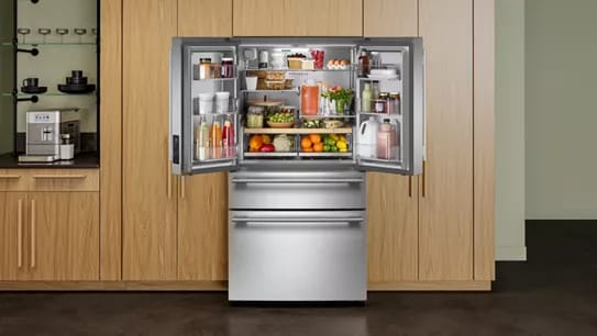 from this 4-door French Door Refrigerator makes room for every farmer's market haul and brings convenience with customizable storage spaces for your unique ingredients.