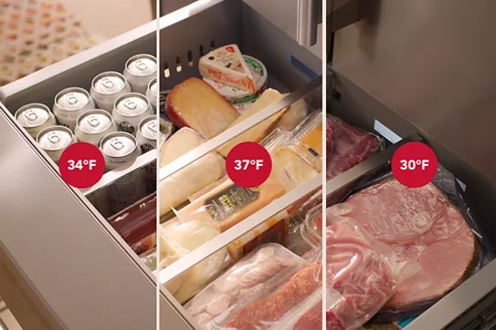delivers organization with removable storage dividers and allows you to set temperatures manually. Adjust your drawer to be wine storage (50°F), deli storage (37°F), drink storage (34°F) or meat storage (30°F) at the touch of a button.