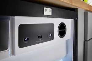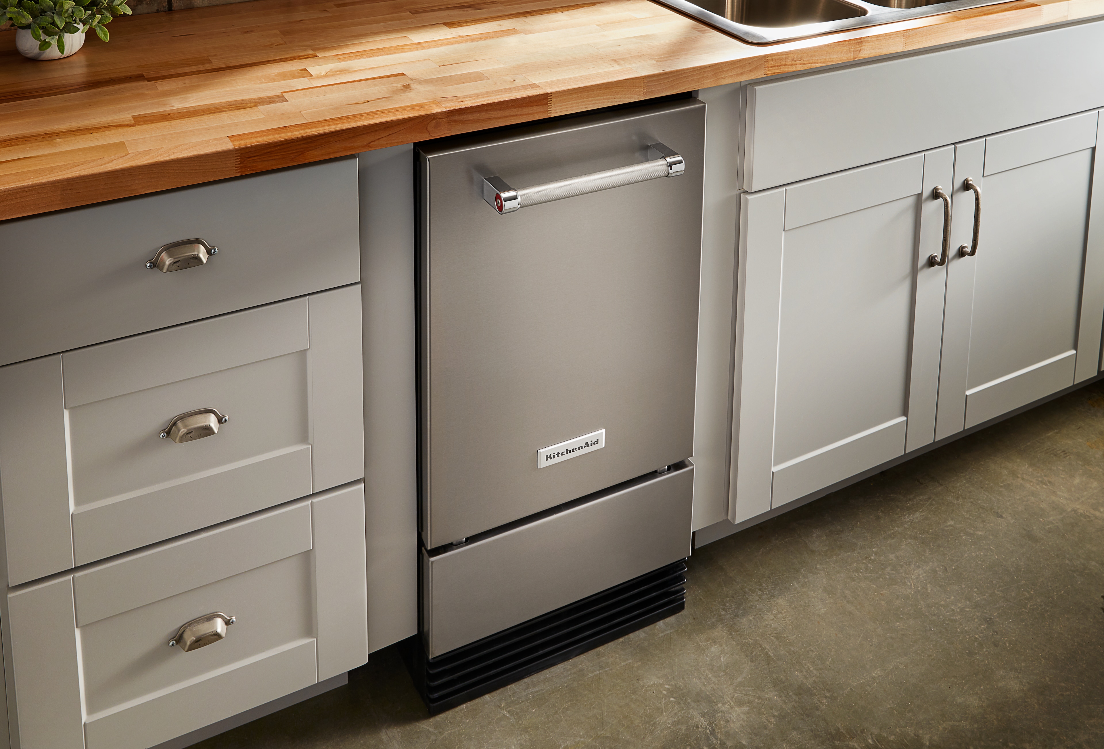 allows the door to sit flush without protruding or leaving a gap between the ice maker and adjoining cabinets, providing a built-in look that adds a touch of style to your kitchen or bar space.