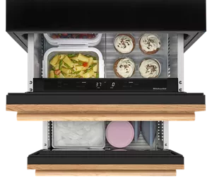 provides a built-in look within a standard 24" base cabinet, so the appliance seamlessly blends in, letting your style stand out. Drawers sit flush with surrounding cabinet fronts when closed.