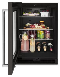 24" Undercounter Refrigerator with Glass Door and Shelves with Metallic Accentsand with PrintShield™ Finish