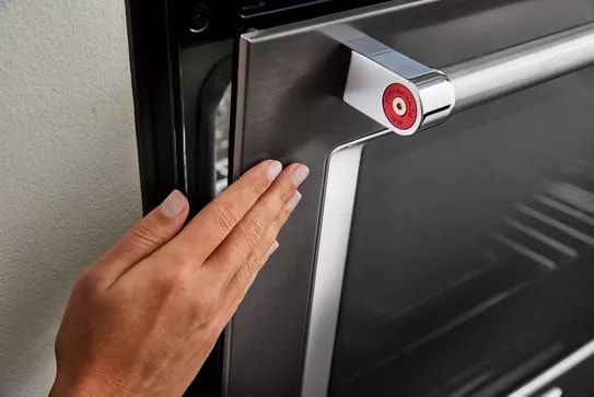 Features specialized hinges that make it easy to shut the oven when your hands are full. Just give the door a nudge, and it will gently close itself.