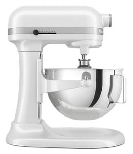 Batteur sur socle à bol relevable, 5,5 pintes, KitchenAid®Rehaussez votre calibre culinaire avec une puissance dans le bol 2 fois plus grande que dans le batteur sur socle à tête inclinable*. Une performance de style professionnel associée à un verrouillage à 3 points procure une bonne stabilité lors du malaxage d'ingrédients lourds ou denses. Conçu avec 11 vitesses différentes, y compris le réglage de vitesse 1/2, pour vous procurer le contrôle de régler sur n'importe quelle puissance, de basse à élevée. Donc peu importe la tâche que vous avez entre les mains, que ce soit intégrer, pétrir, mélanger, effilocher ou battre, le batteur sur socle à bol relevable KitchenAid® de 5,5 pintes est conçu pour tout faire. Pour étendre vos capacités de création, explorez plus de 10 extensions pour batteurs sur socle, chacune ayant le pouvoir de dévoiler tout un monde de techniques de cuisson, d'expérimentation et d'inspiration inexploitées. *Par comparaison au modèle KSM150 en mesurant la puissance du moteur dans le bol au dessus de la vitesse 2. **Extensions vendues séparément
