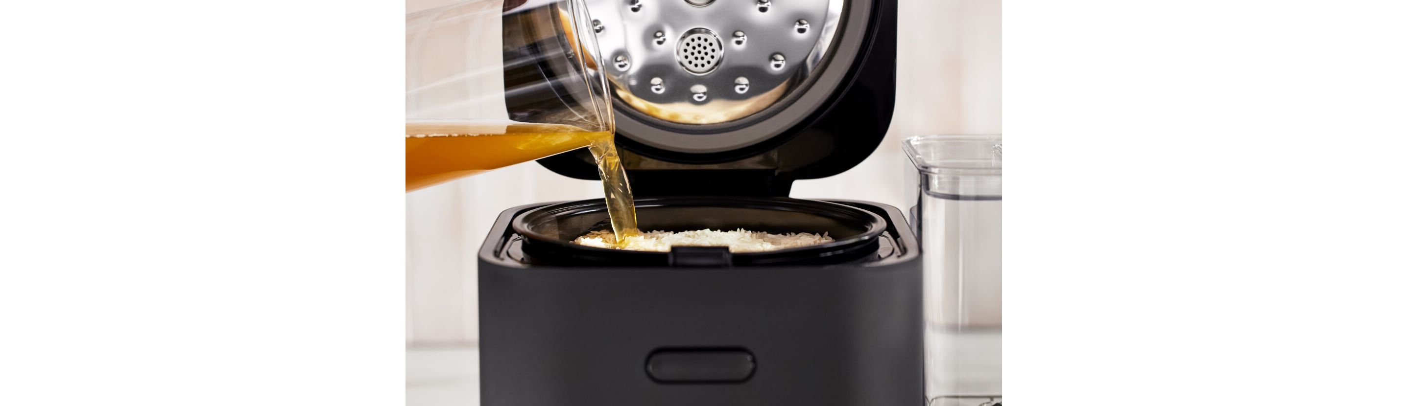 Transformez facilement le riz, les grains et les haricots en vedette de tout repas grâce à ce cuiseur à grains et à riz intuitif qui détecte les quantités, distribue les liquides et fait mijoter à la perfection.