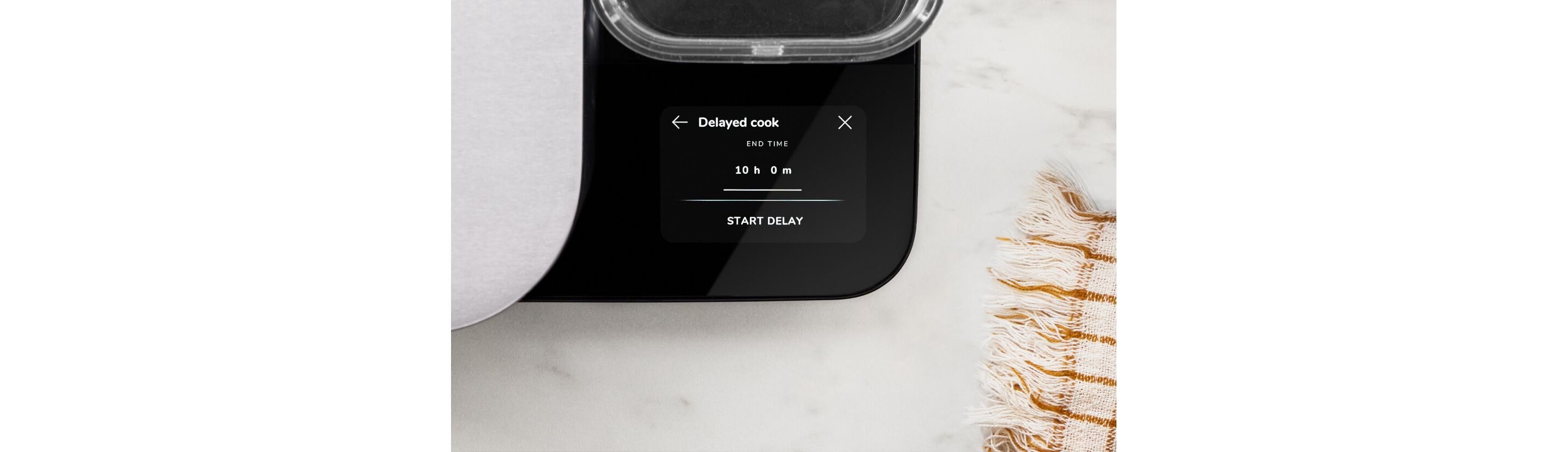 Avec l’option de différer le démarrage de la cuisson jusqu'à 24 heures, dégustez vos plats quand vous le voulez ou prenez de l’avance sur la préparation de vos repas. Vous pouvez aussi garder vos aliments au chaud pendant une durée allant jusqu’à 6 heures.