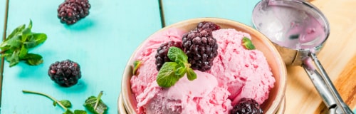 Crème glacée aux pépites de chocolat et à la mûre Créez une délicieuse crème glacée aux mûres et pépites de chocolat avec cette recette et votre batteur sur socle KitchenAid muni de l’accessoire sorbetière. -