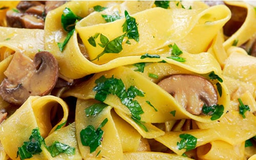 Fettucine frais aux champignons, légumes verts et noix Transformez votre cuisine en trattoria avec cette recette de fettucine frais aux champignons, légumes verts et noix grâce au batteur sur socle KitchenAid. -