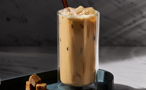 Espresso frappé glacé au lait l’avoine et à la cassonade Faites-vous plaisir avec un espresso glacé frappé au sucre brun et au lait d’avoine moderne et savoureux grâce à notre recette facile. Rafraîchissant! -