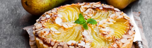 Tarte aux poires, au gingembre et aux noix Créez une tarte aux poires, gingembre et noix riche et savoureuse. Cette recette facile, sans gluten ni céréales, saura ravir tous vos invités. -
