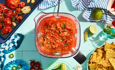 Pimentez votre soirée tacos avec cette recette de salsa au chipotle fumé Goûtez à cette salsa au chipotle fumé qui explose de saveurs. Utilisez votre mélangeur KitchenAid® Pure Puissance pour préparer une bonne quantité de cette salsa afin de rehausser vos tacos et nachos. -