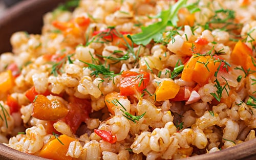 Salade d’orge aux légumes rôtis (Végétalien, riche en fibres, bonne source de protéines) Découvrez ce plat végane délicieux, riche en fibres et en protéines. Cette salade d'orge au four est saine, facile à réaliser et pleine de saveurs. -