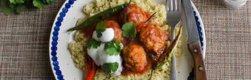 Boulettes de viande marocaines épicées et couscous (Riche en protéines, riche en fibres) Savourez ces boulettes de viande marocaines acidulées accompagnées de couscous. Préparez cette recette avec votre cuiseur à grains et à riz KitchenAid, -
