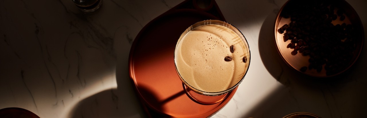 - Verser l’espresso, la liqueur de café et la vodka dans un coquetelier, ajouter les glaçons et agiter vigoureusement jusqu’à ce que la boisson soit mousseuse et froide.