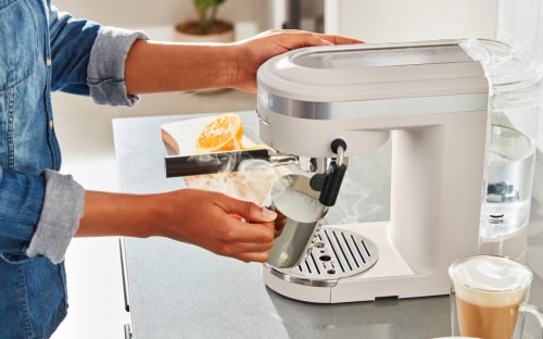 Apprendre à utiliser une machine à espresso semi-automatique est simple, même si vous commencez tout juste à expérimenter avec différents types de café. Les machines à espresso semi-automatiques KitchenAid® vous permettent de préparer facilement un espresso authentique à la maison. Des caractéristiques telles qu'un porte-filtre à base plate pour une mouture compacte uniforme et un sélecteur de dosage facile à utiliser améliorent votre expérience, vous permettant de préparer des espressos, des lattés et des cappuccinos à votre goût. Grâce à la technologie de chauffage rapide Thermocoil, l'eau atteint la température d'infusion parfaite en moins de 45 secondes. De plus, la pré-infusion à basse pression combinée à une pompe italienne à 15 bars permet d'obtenir une crema riche et onctueuse.