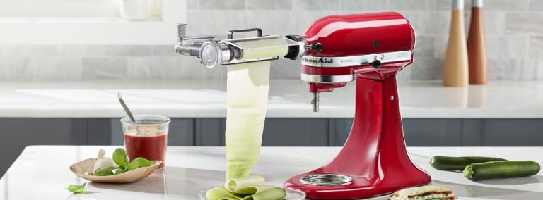 Vous pouvez préparer des repas et des hors-d'œuvre frais et nutritifs avec les batteurs sur socle KitchenAid® équipés des accessoires coupe-légumes en rubans, découpeur en spirales et bloc râpeur-éminceur.