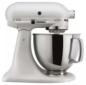 Mélangeur sur socle à tête inclinable de 5 pte de la série Artisan®Que vous ayez besoin de 9 douzaines* de vos fameux biscuits au chocolat ou de poulet effiloché pour les tacos du mardi avec vos amis ou votre famille, le batteur sur socle à tête inclinable de la série Artisan® KitchenAid® de 5 pintes vous procure la capacité dont vous avez besoin pour chaque occasion. Ce robuste batteur sur socle à tête inclinable a été conçu pour durer et offre 10 vitesses pour pétrir en douceur, mélanger en profondeur et fouetter les ingrédients d’une grande variété de recettes. Il est offert en plus de 20 couleurs afin de s’assortir à votre décor de cuisine ou votre personnalité. Laissez libre cours à votre créativité et faites plus avec votre batteur grâce à un choix de plus de 10 accessoires facultatifs** à brancher à la prise, du broyeur d’aliments aux coupe-pâtes et plus. *En utilisant le batteur plat, pâte à biscuits de 28 g chacune. **Vendus séparément.
