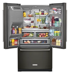 Brings premium style inside the refrigerator to complement the quality ingredients you keep on hand. Sleek silver colored walls accented by metallic trim on shelves, drawers and door bins offer a step up from the standard white interior.