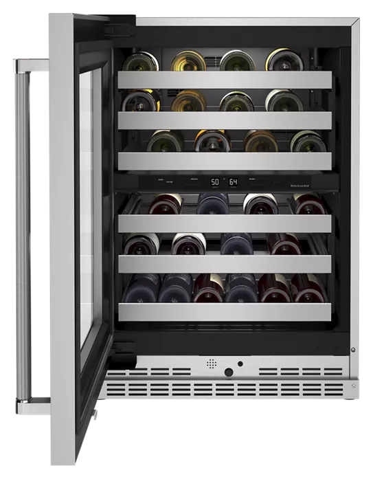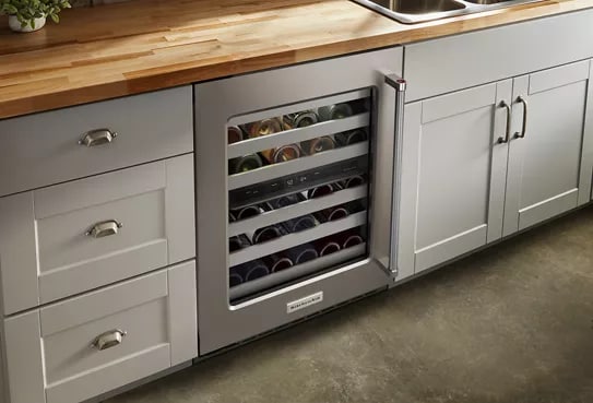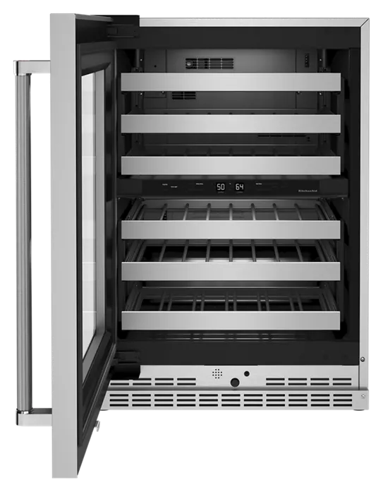 Cellier sous le comptoir avec porte en verre et porte-bouteilles à devant en métal - 24 po