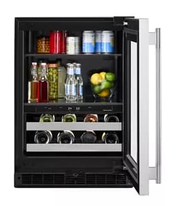procure un aspect encastré dans une armoire de base standard de 24 po, assurant une intégration parfaite du centre de rafraîchissements et faisant ressortir votre style. Les charnières dissimulées permettent à la porte du centre de rafraîchissements d’affleurer aux armoires avoisinantes lorsqu’elle est fermée et de s’ouvrir quand même à 115 degrés.